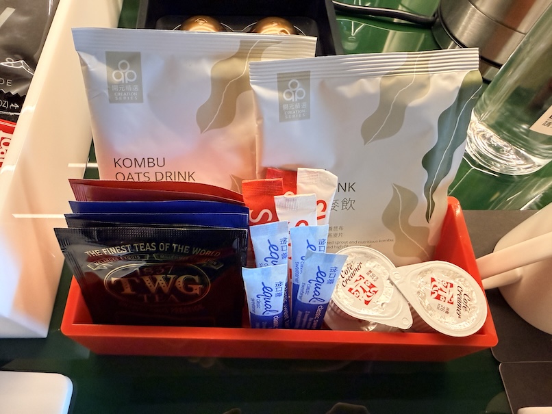 2026年1月に再訪したところネスプレッソは最新式になっていました。また、TWGの紅茶のほか、コンブ茶も置かれていました。