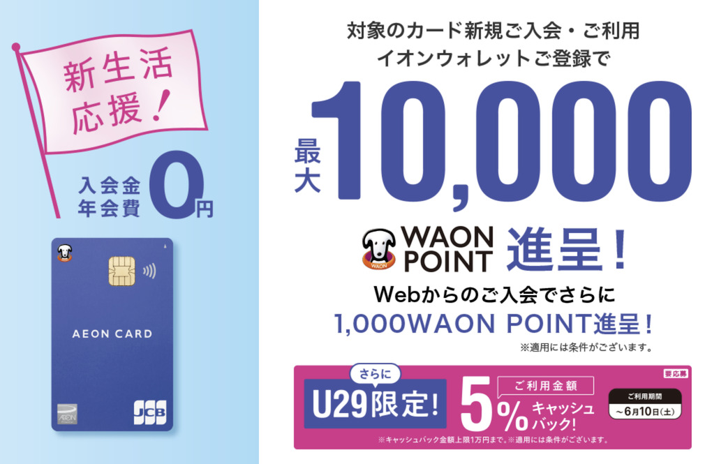 WAON POINTはイオンカードの入会キャンペーンで貯めることができます。また、イオンカードをポイントサイト経由で発行すればポイントサイトのポイントも貯めることができます。