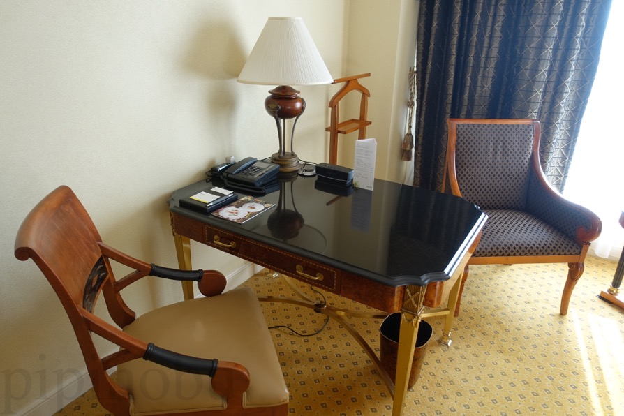 インテリアは、ホテル全体と同じように、ヨーロピアンクラシックな感じです。クラシックといっても、調度品それぞれに古さは感じられず、適度にメンテナンスされているのがわかります。
