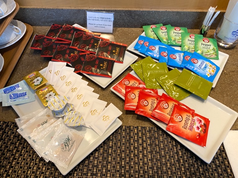 最後は、朝食の様子をご紹介したいと思います。朝食の時間のドリンクの品揃えは、前半でご紹介したアフタヌーンスナック(アフタヌーンティー)と同じになります。